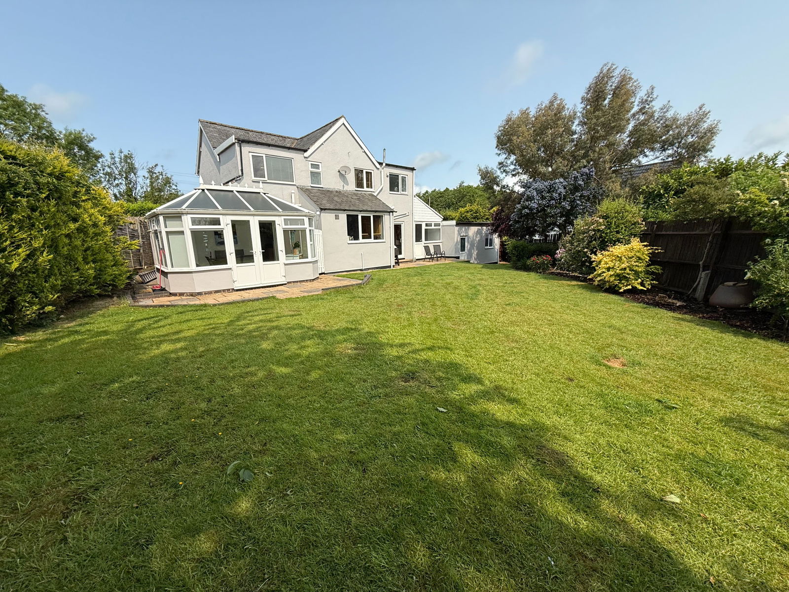 A spacious, extended detached home occupying an impressive plot with further scope for extension, subject to the relevant planning consent. The well-maintained accommodation comprises in brief of entrance porch, reception hall, lounge, dining room, study/family room, modern kitchen, utility, bathroom/guest WC, conservatory, four bedrooms, ensuite shower room, family shower room, extensive driveway, double garage and large mature gardens. EPC Rating D. Council Tax Band E.