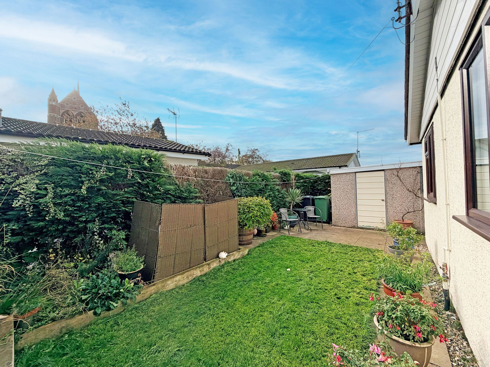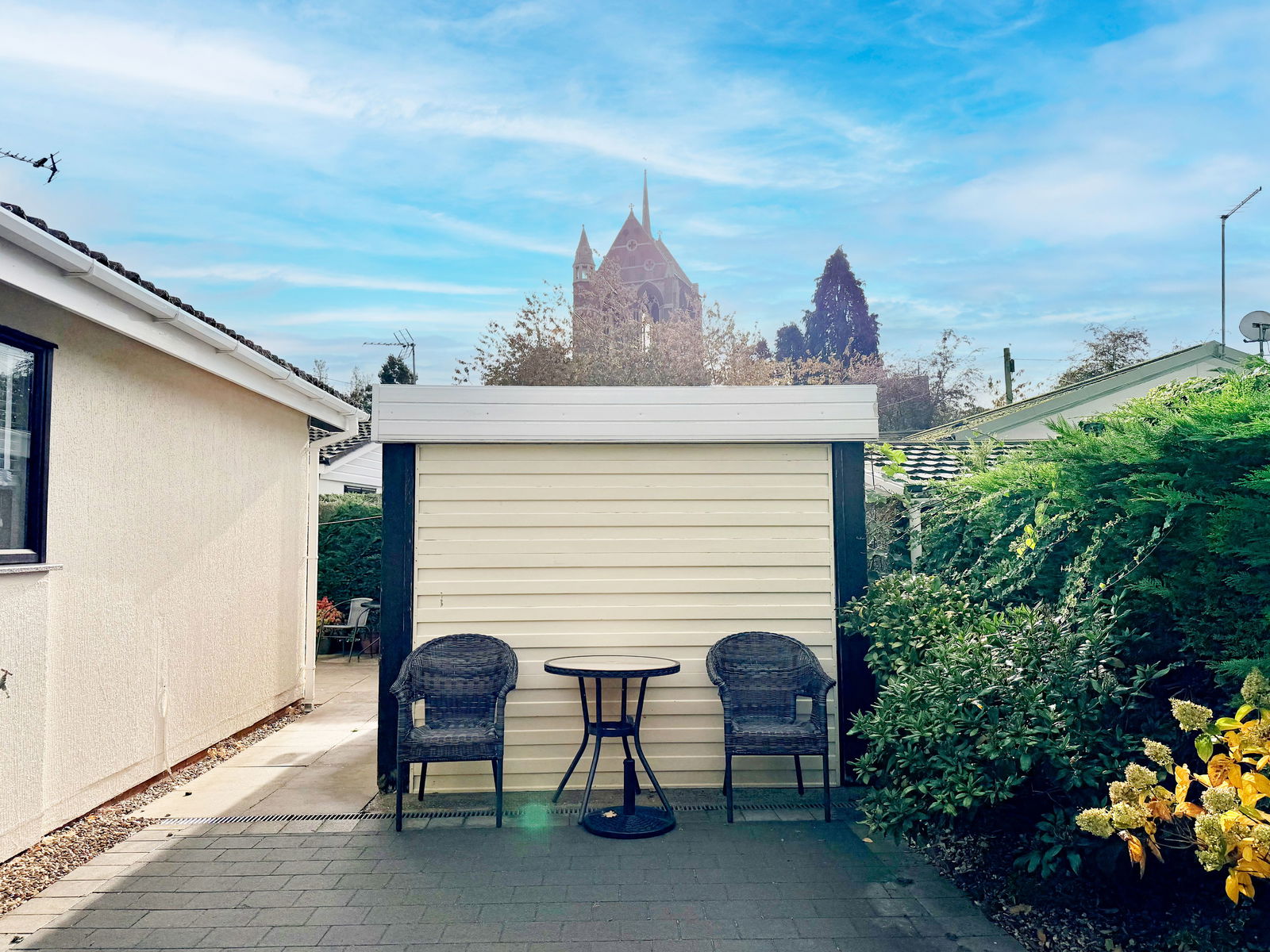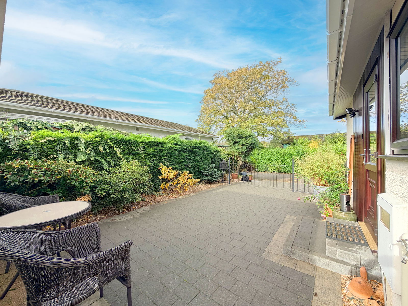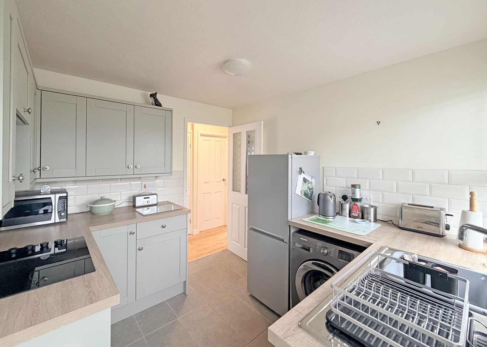 The well-planned kitchen is attractively presented and provides access to the side driveway for added convenience. From the hallway, there is useful built-in storage and access to two comfortable bedrooms - the main bedroom benefiting from fitted wardrobes with mirrored sliding doors — and a modern, fully tiled bathroom.