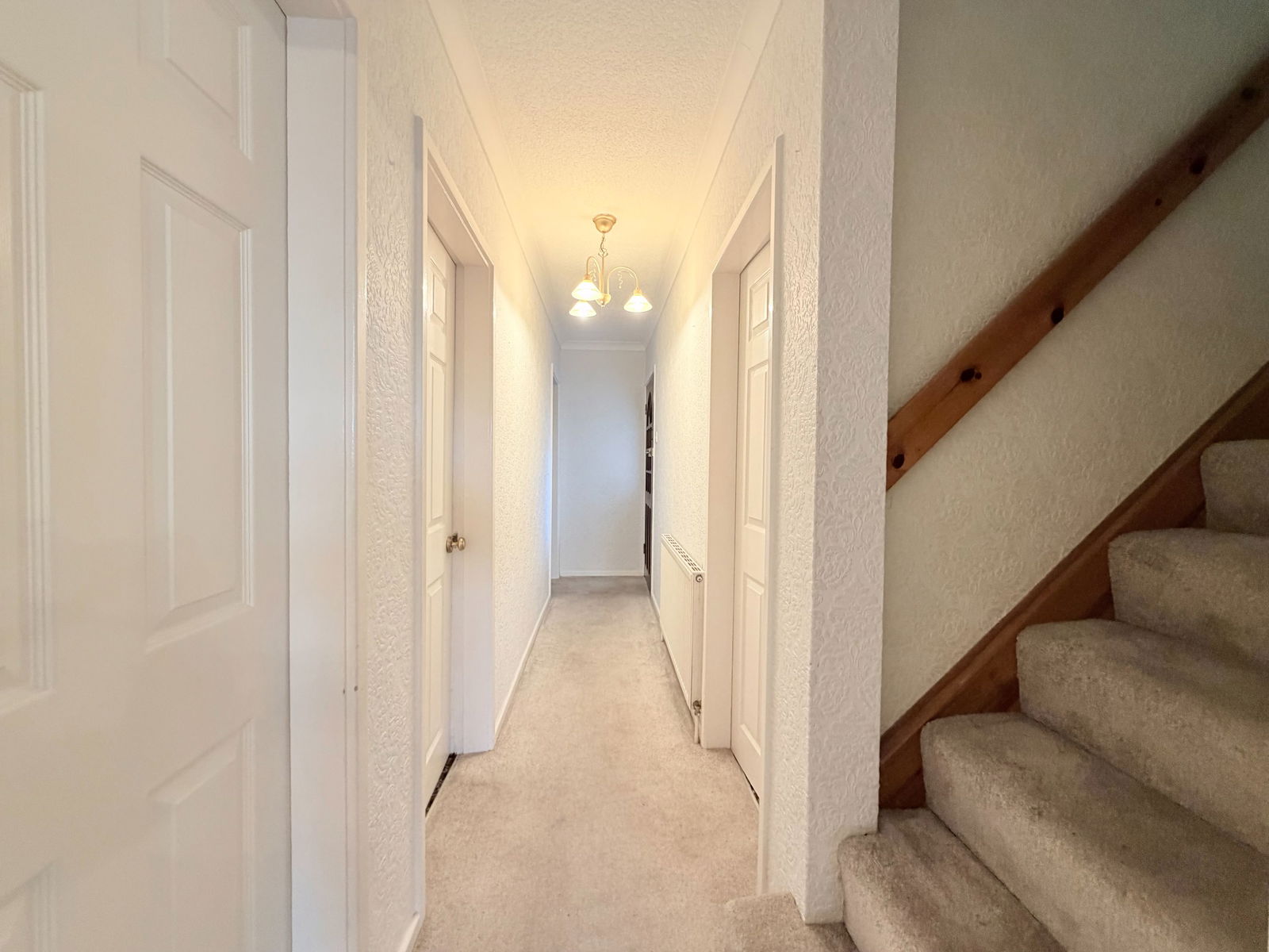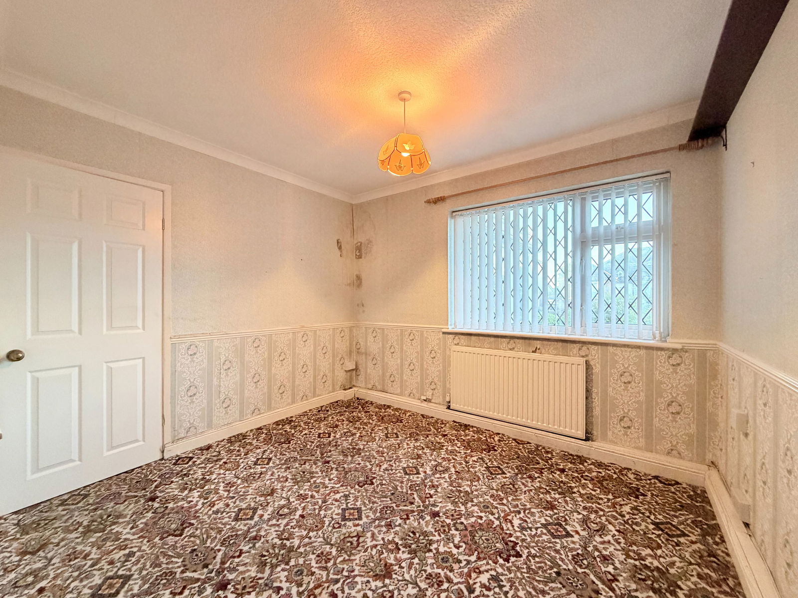 To the front, a block-paved driveway provides ample off-road parking and leads to both the garage and an enclosed porch. The front door opens into a entrance hall giving access to three versatile double bedrooms—two positioned at the front of the property and one to the side—together with a refitted, spacious shower room.