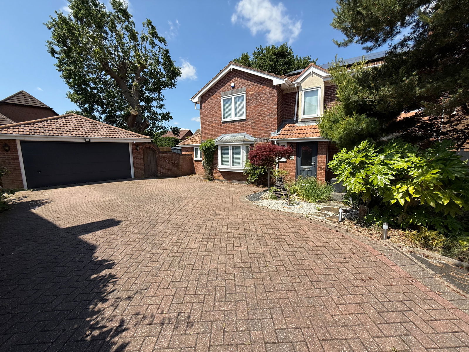 This extended, detached family home is situated in a quiet cul-de-sac in a highly sought-after location. The property sits back from the road behind a generous driveway and fore garden which leads to a detached double garage. The welcoming reception hall has stairs rising to the first floor and doors radiating to the ground floor accommodation. There is a spacious lounge with a pleasant log-burner, from here you can access the dining room with a vaulted ceiling and doors to the rear garden. The kitchen has been extended and now has ample room for dining/living furniture, there is also a generous amount of storage units and a door through to the utility room and guest WC. To the rear of the property is a delightful conservatory that now has a tiled and insulated roof, plus patio doors to the garden. On the first floor, you will find four bedrooms. The spacious master bedroom has a copious amount of fitted furniture and a large ensuite bathroom. There is a further en-suite shower room to bedroom two, plus a family shower room. The rear garden is well stocked with an abundance of shrubs and plants and extends to the side of the property where you can find a useful hard-standing area, ideal for storage/log sheds. This impressive residence is offered for sale with no upward chain.