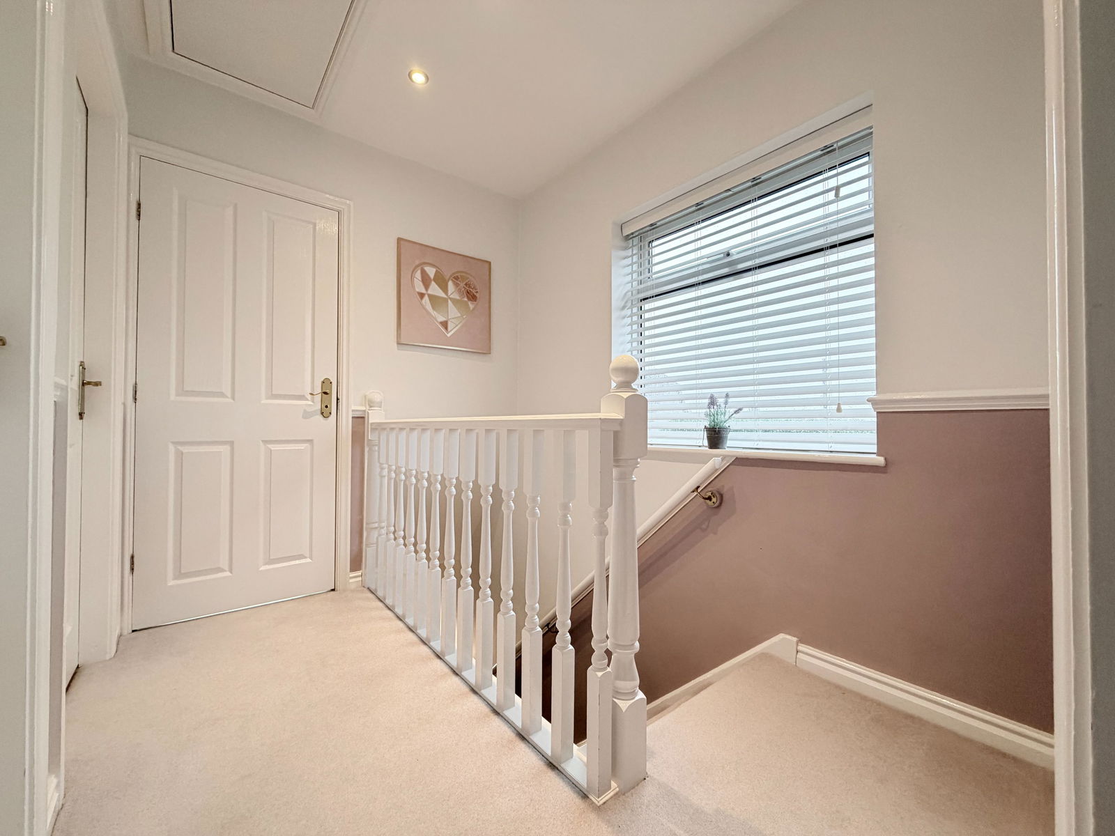 The property is approached via a lawned frontage and a block-edged tarmacadam driveway providing ample off-road parking and access to the garage. An entrance door leads into a spacious porch with built-in storage and onward into a welcoming entrance hall, which provides access to a guest WC and the integral garage, complete with a useful utility area for a washing machine and tumble dryer.