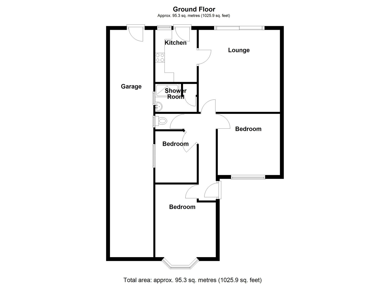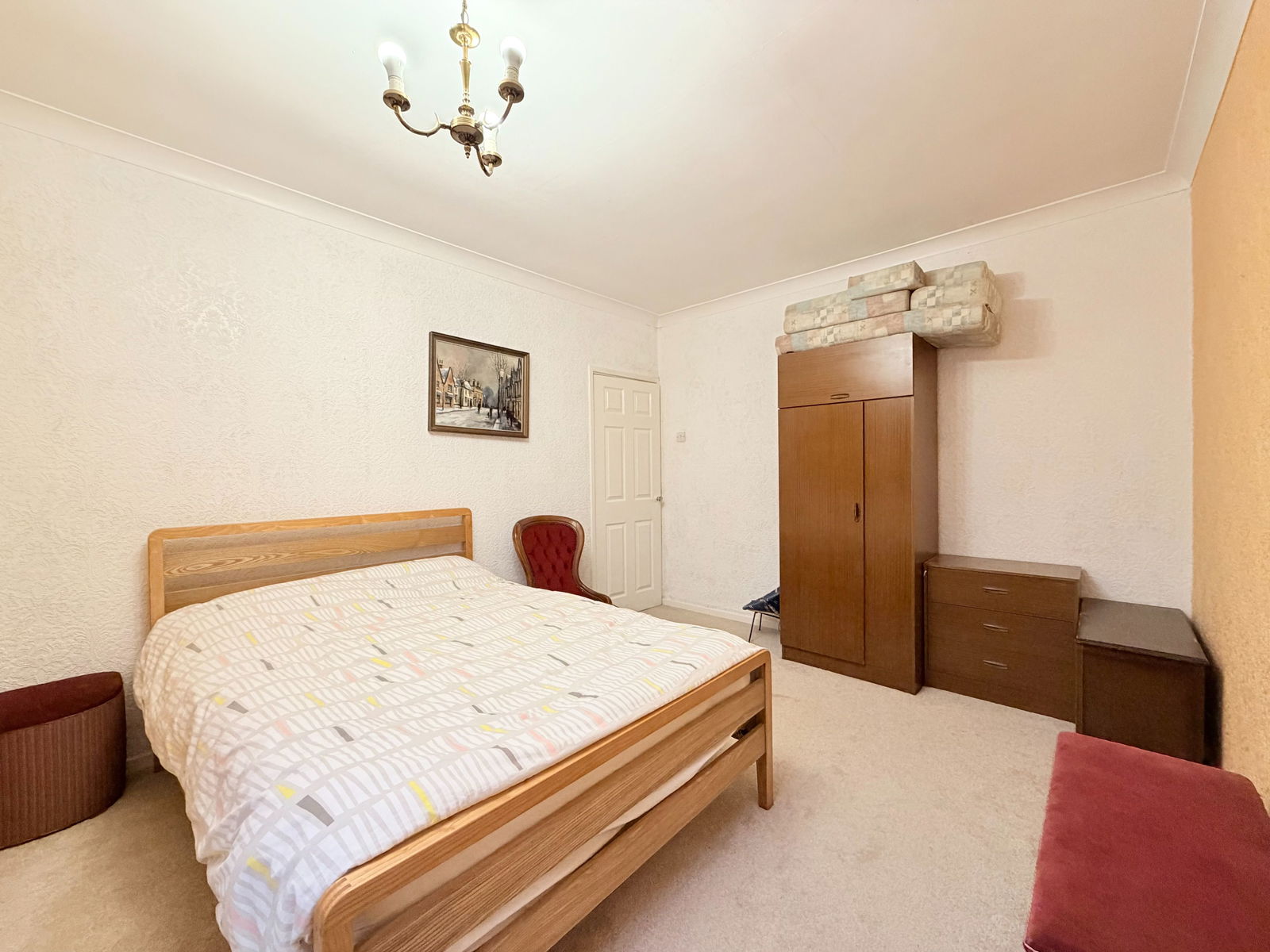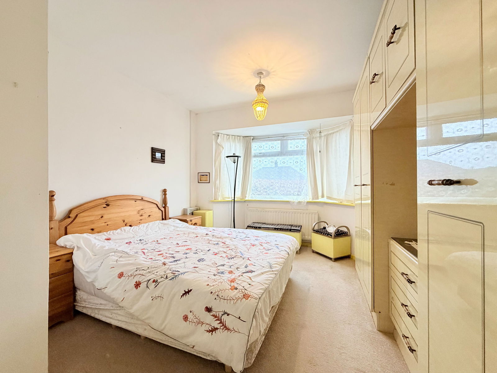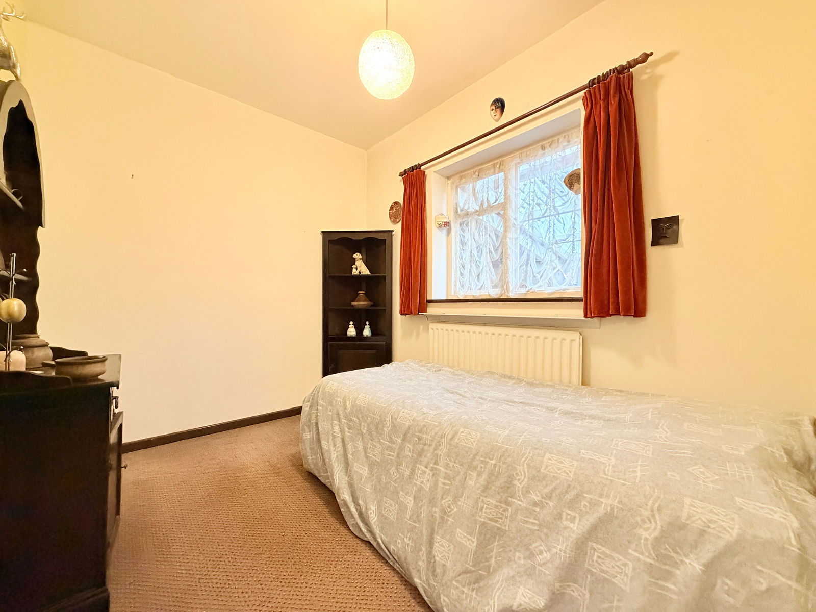 The property is approached via paved off-road parking leading to the garage door and a side entrance, which opens into a central hallway providing access to the accommodation. To the front are two spacious bedrooms, while to the side is a smaller and versatile third bedroom, ideal for use as a bedroom, home office or dining room. Also located to the side is a shower room featuring a large walk-in shower, along with a separate WC.