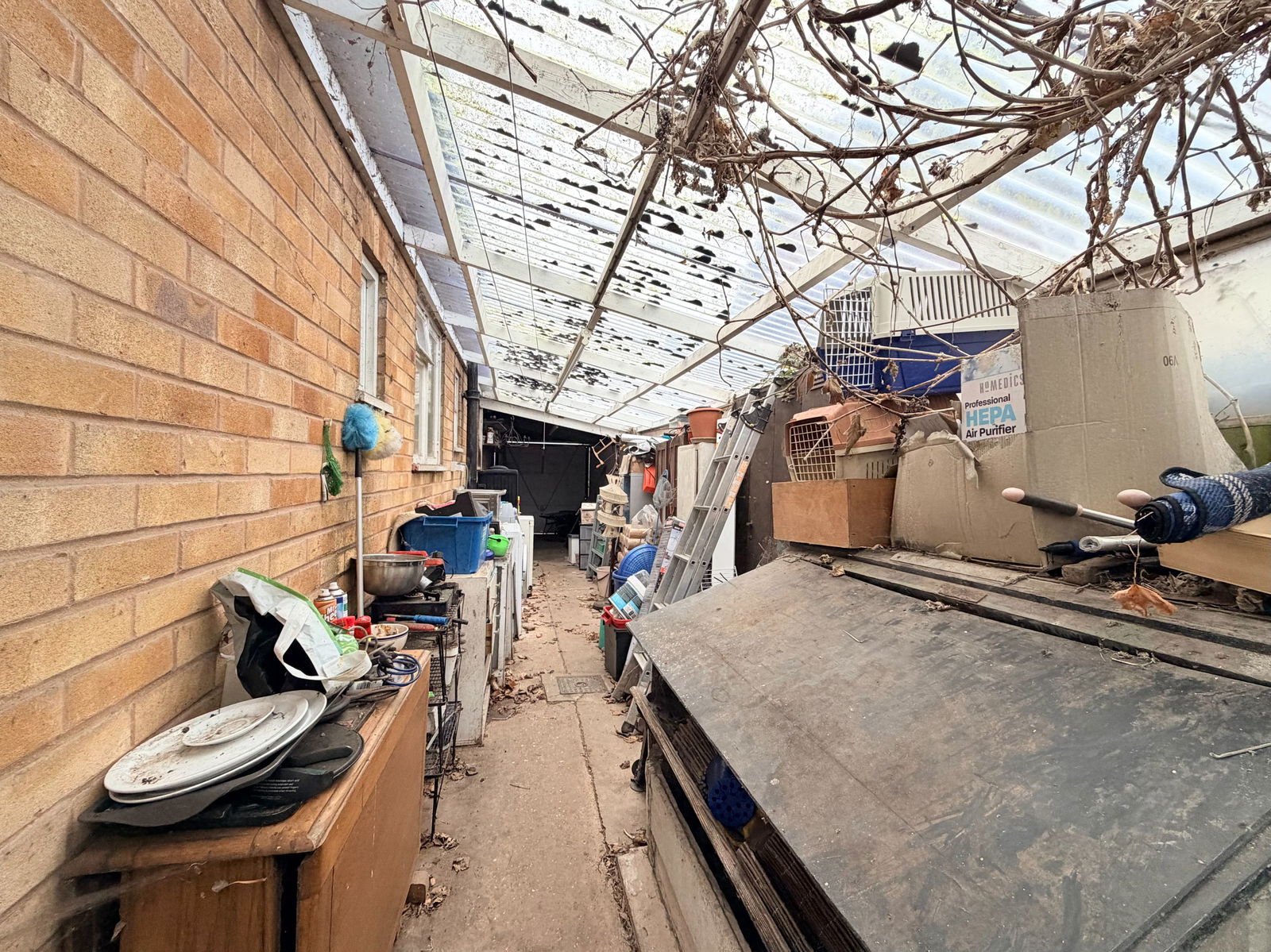 Externally, the rear garden is mainly laid to lawn and includes a covered pergola area. From here there is access to the full-length garage/lean-to area running along the side of the property, presenting an ideal opportunity for extension, subject to planning permission.