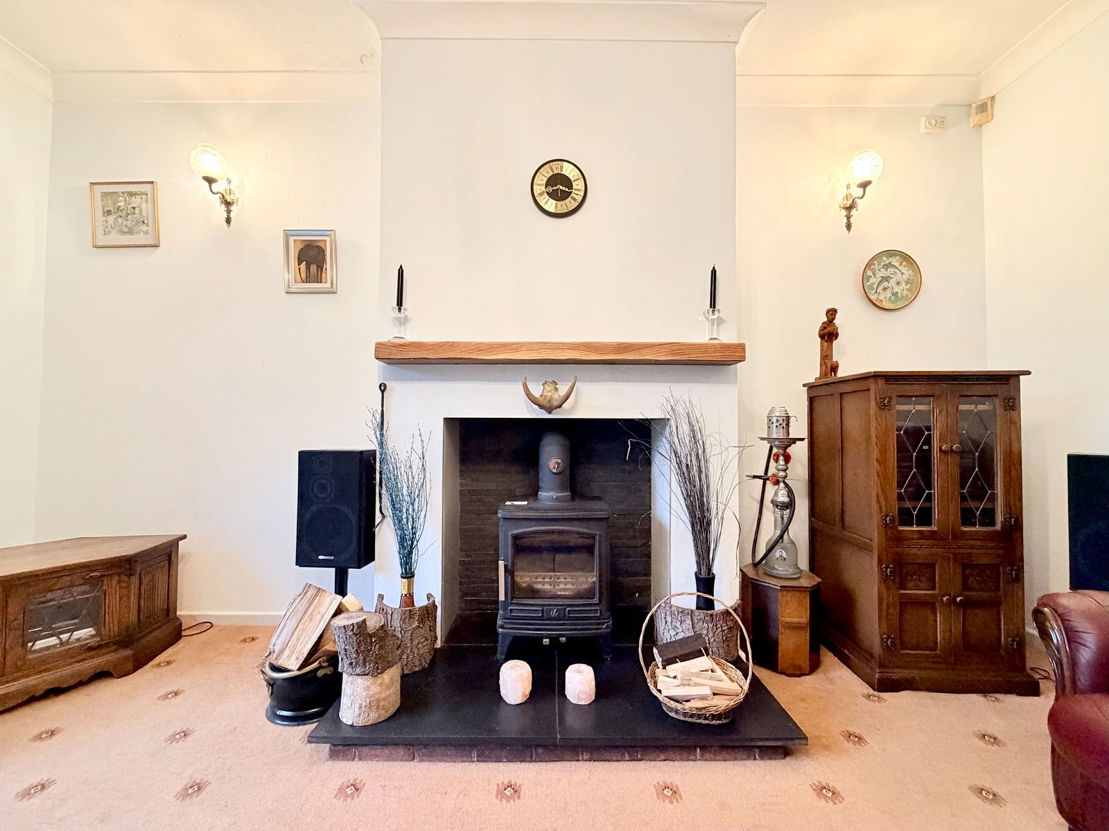 To the rear of the property is a generous lounge diner, featuring an attractive log burner and sliding patio doors that open out onto the south-east facing rear garden. The kitchen is accessed from the lounge and offers space for appliances along with an eye-level oven and grill.
