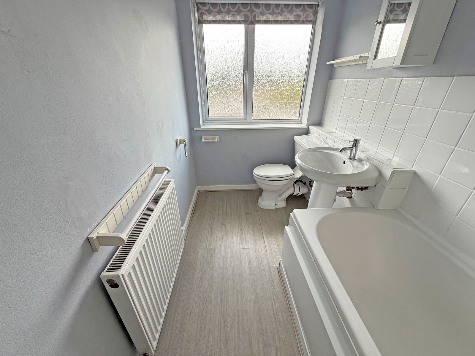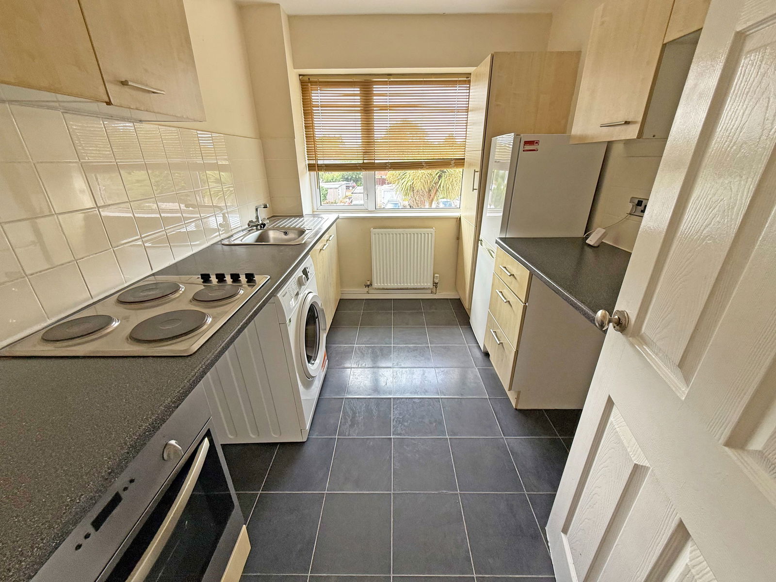 This first floor maisonette sits back from the road with a path leading to the front door, the stairs rise to the landing with a storage cupboard and doors to all accommodation. The lounge is located at the front of the property with a door through to the kitchen. There are two bedrooms and a bathroom with a white suite. There is also a parking space to the rear of the property.