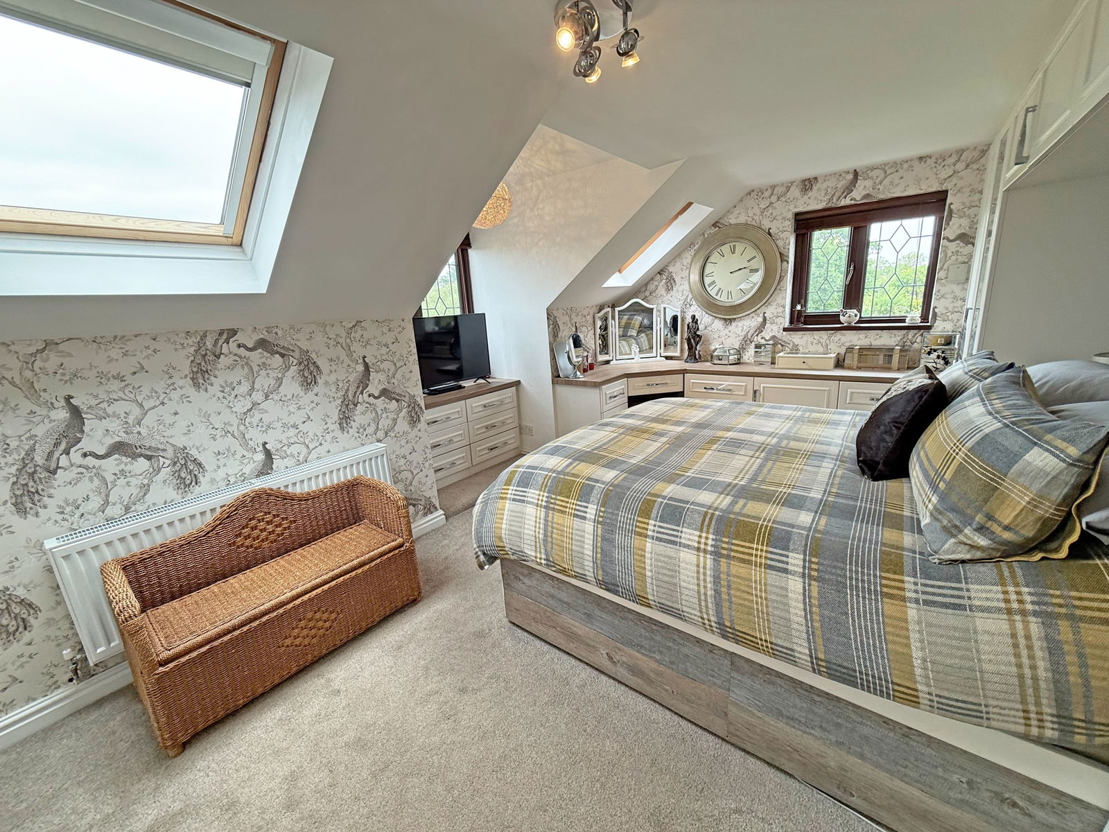 A highly individual detached home with beautiful countryside views to the front and well-maintained accommodation comprising in brief of reception hall, lounge, guest WC, full-width living/dining kitchen, sitting room/fourth bedroom, utility room, three double bedrooms, an impressive spacious bathroom, landscape rear garden, garage and driveway providing off road parking. EPC Rating C. Council Tax Band E.