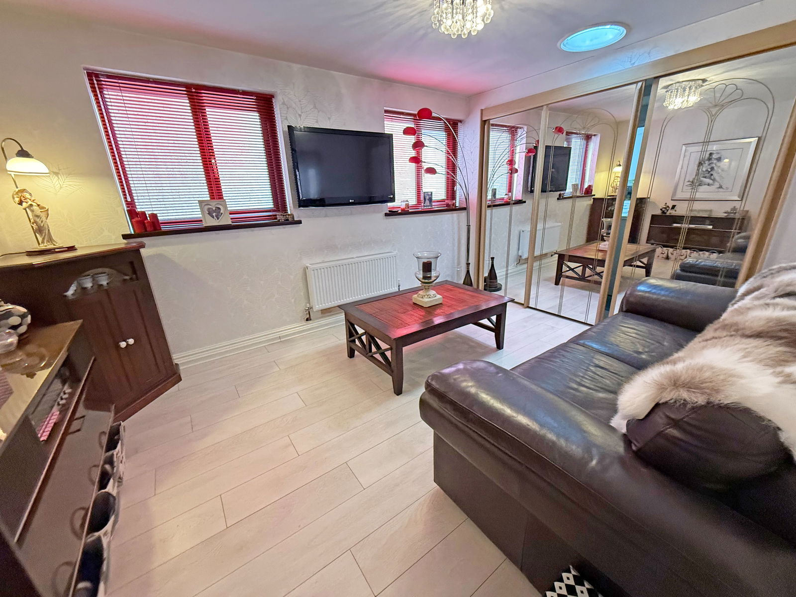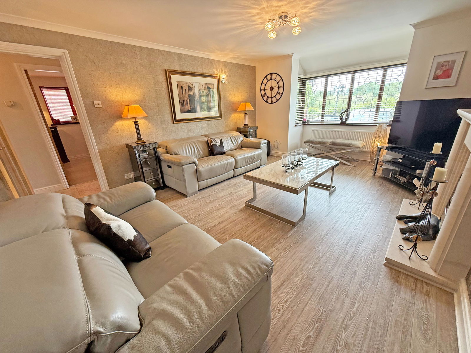 This beautiful detached home enjoys open views to the front and sits behind a block paved driveway providing off-road parking and leading to the garage. The welcoming reception hall has doors radiating off to the ground floor accommodation, including the guest WC. There is a generous lounge at the front of the property with stairs rising to the first floor and a stylish fireplace. The sitting room could also be used as a 4th bedroom, there is built-in storage and a door to the utility room. At the rear of the property is a beautiful full-width dining kitchen, fitted with an array of modern storage units and appliances, there is also a bespoke bar area and French doors leading out to the rear garden. On the first floor you will find three good-sized bedrooms with fitted furniture and an exceptional bathroom with a four-piece suite and a separate shower room. The rear garden is low maintenance and has several seating areas, there is a lovely pergola and it is well stocked with shrubs trees and plants.