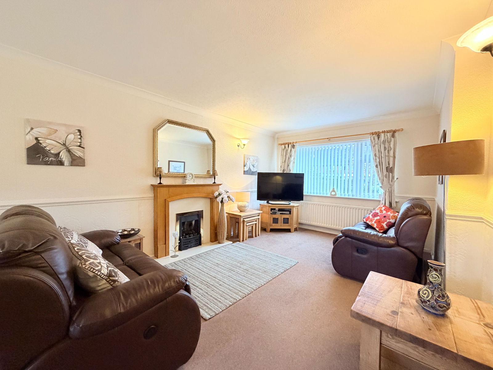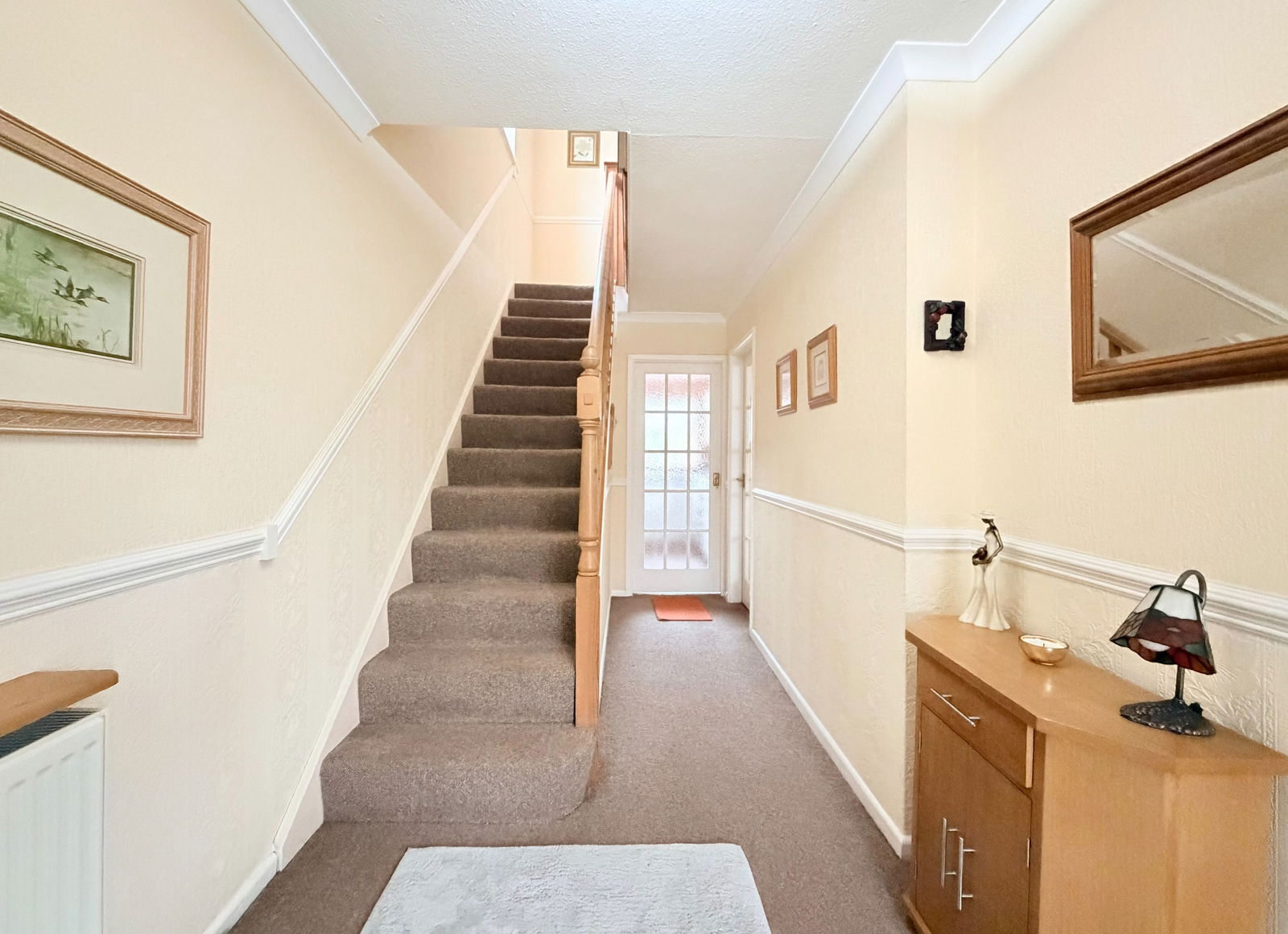 Set back from the road behind a block-paved driveway, the property offers off-road parking and access to the side garage. The front door opens into an enclosed porch, with a glazed door leading through to a spacious entrance hall. To the front of the property is a guest WC, with further doors leading to the kitchen and the through lounge diner.