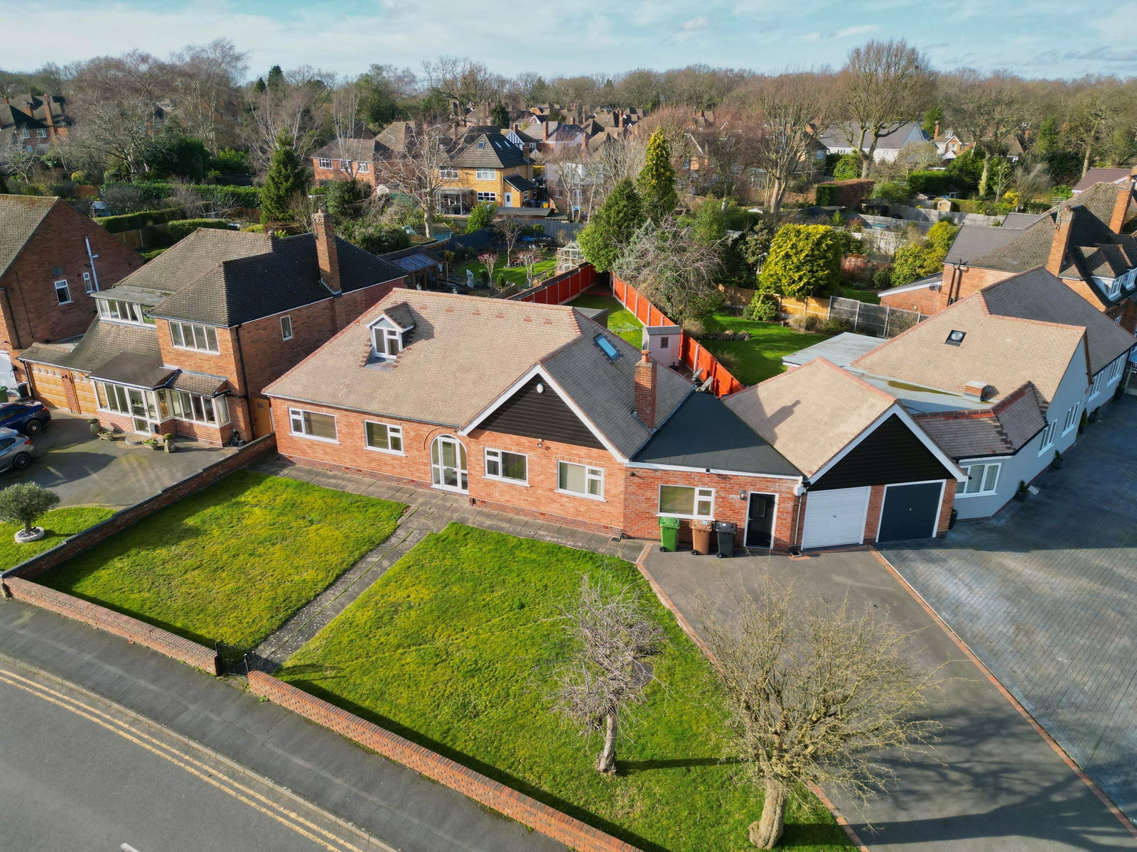A spacious FIVE BEDROOM link-detached dormer bungalow set on a corner plot within this poplar Solihull road. The well presented accommodation comprises in brief of entrance porch, reception hall, lounge, kitchen diner, three bedrooms and refitted bath/wet-room to the ground floor, two bedrooms and shower room to the first floor, lean too with wheelchair friendly access and utility area, garage, driveway providing ample off road parking and a good sized rear garden with a summer house/home office. EPC Rating D. Council Tax Band F.